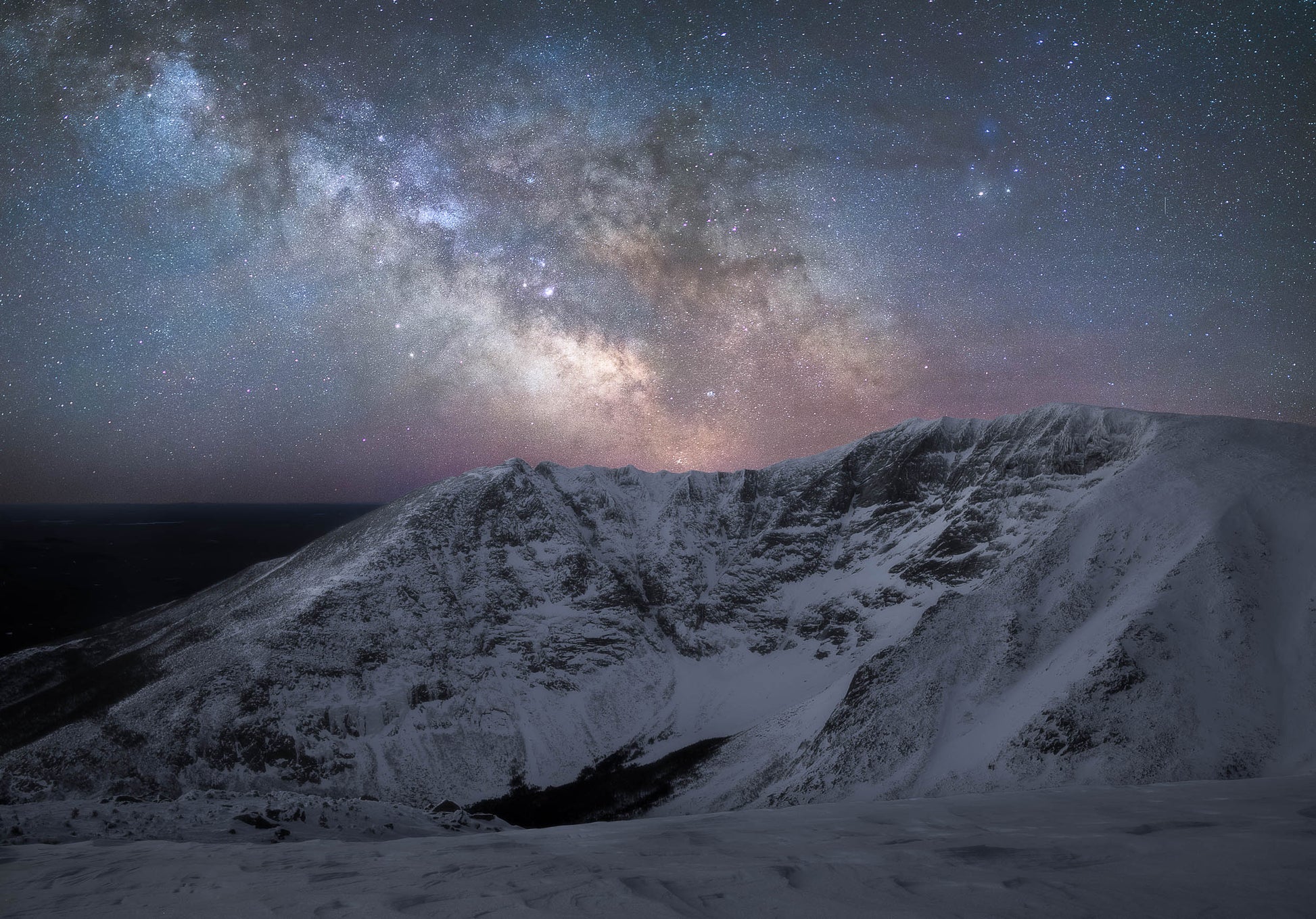 The Milky Way rising over Katahdin's Knife Edge, taken in the middle of winter from Hamlin Ridge, Baxter State Park.
